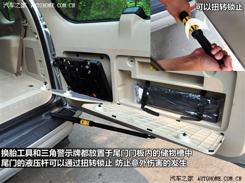 普拉多尾門(mén)的液壓桿可以通過(guò)扭轉(zhuǎn)進(jìn)行鎖止,這樣可以有效防止因?yàn)檎`關(guān)車(chē)門(mén)帶來(lái)的意外傷害,這個(gè)設(shè)計(jì)不需要太多成本但是非常體貼。而另一個(gè)小亮點(diǎn)是后備廂內(nèi)的一個(gè)220V交流電源,接些小電器非常方便。