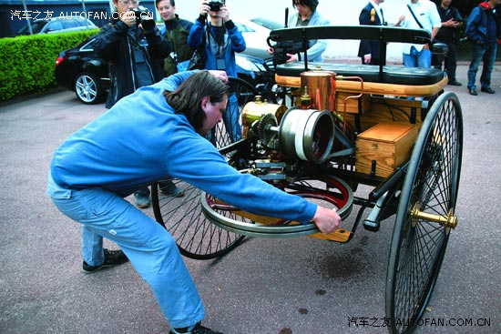 試乘完畢,漏的油似乎比用掉的多。這輛復(fù)制車還算精細(xì),不知道120年前的奔馳1號(hào)是不是也這樣遺灑?盡管如此,“不用馬拉的車”也值得我們肅然起敬了