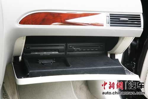 副駕駛的手套箱要按動(dòng)中控面板上的按鈕來開啟。6碟CD、SD卡插槽、用在車載電話上的SIM卡插槽,以及DVD系統(tǒng)都在這里了。只是這樣一來,這個(gè)手套箱也就真的只能放手套用了……