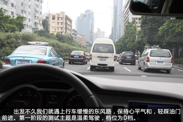 我們以D檔在市內(nèi)溫柔地行駛了約200公里,遇見紅燈必減速停車,絕不嘗試僥幸通過,堅決不踩地板油,不急加速超車,行車電腦顯示百公里平均油耗為9.1L。雖然與廠家公布的油耗數(shù)據(jù)有明顯出入,但面對這走走停停的路況,能維持在百公里9L左右的水平,可以了。另外補充一下,由于測試當天廣州處于高溫狀態(tài),路上地面溫度估計超50度,所以全程開空調(diào),消耗部分燃油。