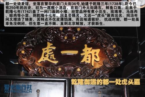 “都一處”名稱的來歷頗有幾分傳奇色彩,當(dāng)年乾隆皇帝從通州微服私訪回京途經(jīng)前門,當(dāng)時所有的店鋪都已關(guān)門,只有一家“王記酒鋪”亮燈營業(yè),便進店用膳,由于招待周到,酒味濃香,小菜可口,所以對小店產(chǎn)生了興趣,便和店主閑談起來詢問酒店叫什么名,店主回答:“小店沒名”。乾隆聽后說:此時京城開門的就你一家“就叫都一處吧!”乾隆回宮后親筆題寫了“都一處”店名,將其刻在匾上,幾天后宮中派人送來這塊虎頭匾。從此“都一處”代替了“王記酒鋪”,生意十分紅火。