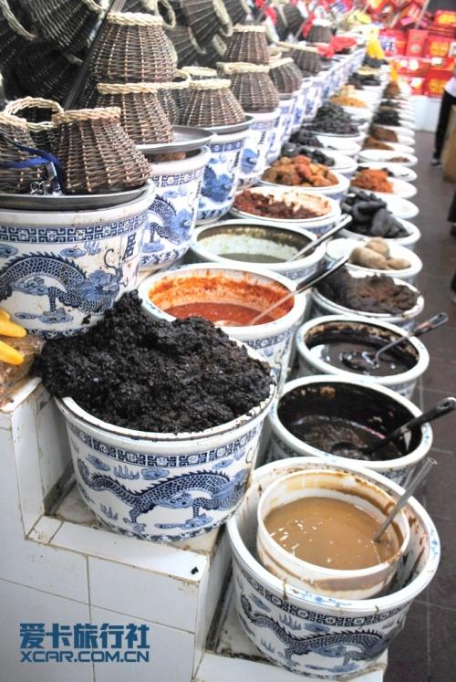 漫步至大柵欄,無意間看到六必居!搬u園六必居為最,金字招牌歷兩朝!绷鼐幼灾频母鞣N風(fēng)味醬菜大名是自不必說了,其中又以八寶菜、醬黃瓜、甜黃醬、醬甜瓜等最為有名。當(dāng)年北京有“五大醬園”,即:六必居、天源、天義成、寶瑞、天章涌,各有特色,而今只有六必居、天源兩家了。 想要嘗嘗當(dāng)年五大醬園的味道早已不能,只有在僅存的六必居和天源去找尋當(dāng)年醬園的留香。