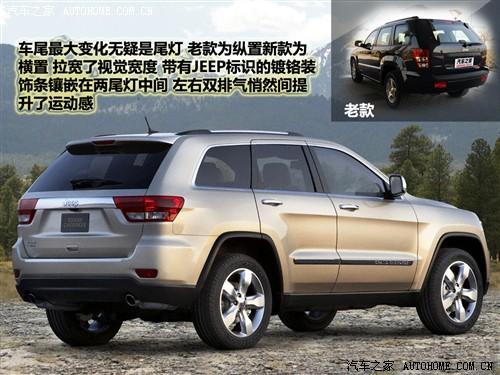 尾燈由縱向改為橫向,或許是為了與前臉上的大燈相呼應,這樣的設計拉寬了視覺寬度,鍍鉻JEEP標識將兩尾燈相連接,尾部線條變化不多,左右雙排氣管不經意間就提升了新款大切的運動感。