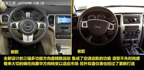 在轉(zhuǎn)向柱附近我們看到了無匙啟動按鈕,目前在售的JEEP頂級車型指揮官都沒有此功能,也許是為了追求JEEP一貫的越野復(fù)古風(fēng)格,而現(xiàn)今的2011款大切將出現(xiàn)無匙啟動,確實是一個方便實用的配置。