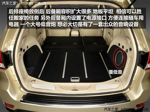 座椅放倒后空間后備廂空間得到很大擴(kuò)大,放倒后地板平整,我想可以勝任搬家的任務(wù),如果用作旅行,后備廂容積足以放下你所需的物品,不是還有車頂行李架呢嘛?后備廂還這是了一個電源接口,方便隨車用電器連接使用。另外在后備廂內(nèi)發(fā)現(xiàn)了一個尺寸不小的低音炮,相信新款大切可以給我們帶來不錯的視聽感受。