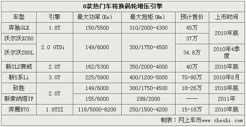 奔馳GLK和沃爾沃XC60作為原裝進(jìn)口車型,將于今年年底左右分別引入搭載1.8和2.0排量的渦輪增壓引擎的車型。而作為國產(chǎn)合資車型的新5系Li、沃爾沃S80L、新SLS賽威、致勝、新索納塔等車型,也將紛紛推出各自排量的渦輪增壓車型。除此之外,作為自主品牌代表的一汽奔騰B70,也將推出搭載大眾1.8TSI渦輪增壓燃油直噴引擎的車型。