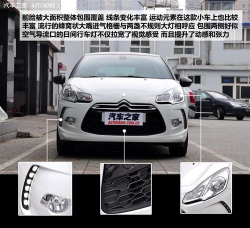 DS3前臉被大面積整體包圍覆蓋,大嘴進(jìn)氣格柵以蜂窩裝網(wǎng)格進(jìn)行填充,類(lèi)梯形的格柵與兩盞不規(guī)則的大燈相呼應(yīng),包圍外側(cè)形似空氣導(dǎo)流口的日間行車(chē)燈在拉寬視覺(jué)感受的同時(shí)增加了車(chē)輛的動(dòng)感和張力,所以說(shuō)DS3并不缺乏運(yùn)動(dòng)元素;唯一可惜的是氙氣大燈沒(méi)有出現(xiàn)。