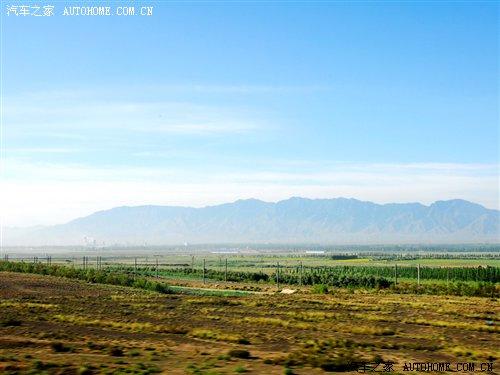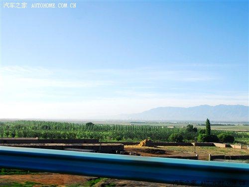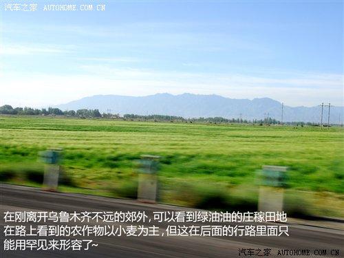 離開高區(qū)駛?cè)雵,車窗外出現(xiàn)了不同尋常的景色。景物也隨著我們的前進(jìn)在不斷地變化。在剛離開烏魯木齊不遠(yuǎn)的郊外,可以看到綠油油的莊稼田地,一片片的小麥田地讓人目不睱接。