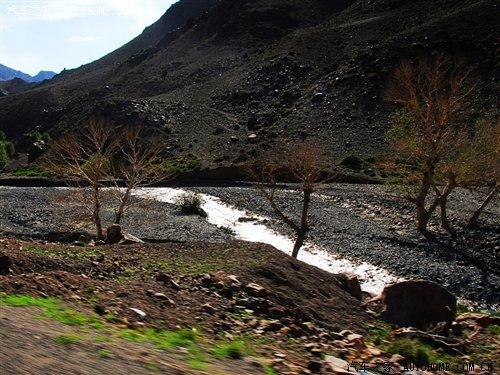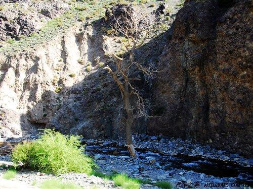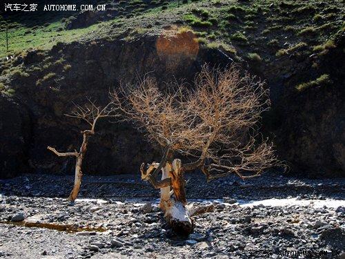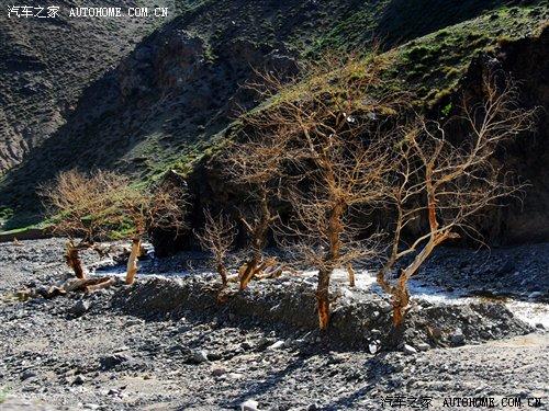 兩旁的山對我來說已經(jīng)不陌生了,所以我把目前轉(zhuǎn)移到了山路旁的小溪,當(dāng)然小溪也是沒有太多的吸引力的,反而是那些干枯的胡楊更令我著迷,沒有葉子而且站得筆直筆直的。據(jù)了解,這種胡楊常生長在沙漠中,它耐寒、耐旱、耐鹽堿、抗風(fēng)沙,有很強(qiáng)的生命力。這也很難怪在那么惡劣的環(huán)境下仍然屹立不倒。
