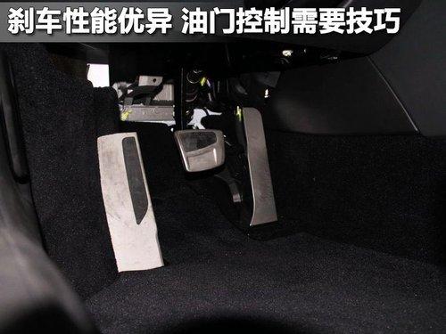 蘭博基尼GallardoLP 550-2剎車油門踏板采用鋁合金設計,帶防滑墊非常的人性化,只是感覺踏板區(qū)域有效狹窄。蘭博基尼Gallardo LP 550-2的制動性能非常出色,油門力度則有沉重。