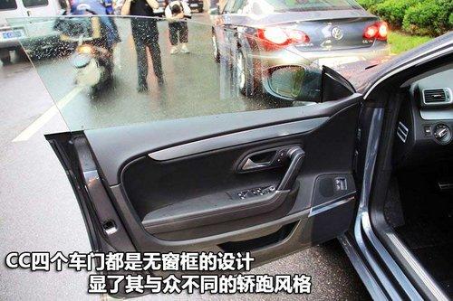 一汽-大眾CC的四只車門都是無(wú)窗框的設(shè)計(jì),這樣的設(shè)計(jì)風(fēng)格在國(guó)內(nèi)的大多數(shù)車型中都很少見(jiàn),這一點(diǎn)也是彰顯了其與眾不同的轎跑風(fēng)格。在車門內(nèi)部的積鍍鉻件和真皮面料的應(yīng)用讓人很容易聯(lián)想到一些豪華車的設(shè)計(jì)元素,也有幾分復(fù)古的感覺(jué)。