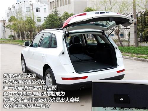 整體來(lái)看,國(guó)產(chǎn)Q5除了最低配車型的配置明顯太低以外,其他三款車型的配置還是不錯(cuò)的,都配有真皮座椅、前排加熱、自動(dòng)氙燈、感應(yīng)雨刷等,MMI系統(tǒng)和并線輔助功能只出現(xiàn)在高配兩款車型上還是能夠理解的,但最令人不能容忍的是最低配車型竟然連后排空調(diào)出風(fēng)口都沒(méi)有,定速巡航也不是標(biāo)配,要知道在一些自主品牌的緊湊型車上定速巡航都成為了標(biāo)準(zhǔn)配備,豪華品牌實(shí)在沒(méi)必要為了拉開(kāi)低配與高配的距離而舍掉這種配置。