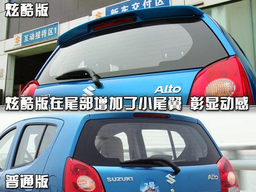 再來看看車身側(cè)面,這里的變化就比較明顯了,共有兩處。不過,也都是我們可以自己動手來改變的,車門上增加一條粗狂的黑色防擦條,前端的鍍鉻部分由ALTO的印記。底部還假裝了側(cè)裙,讓底盤擁有更明顯的貼地感。