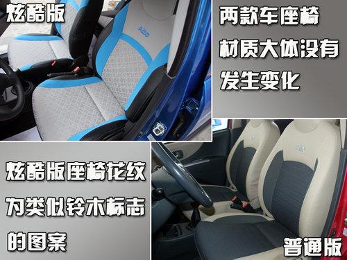 下面是我們都發(fā)現(xiàn)了但是可能并不太在意的一個(gè)改變,那就是座椅,新奧拓采用的是前絨后皮的座椅形式,不知道為什么設(shè)計(jì)成這樣,前皮后絨不是更好么...炫酷版將座椅的配色進(jìn)行了改變,同樣將外部的色調(diào)運(yùn)用其中。另外,中間的淺色部分還加入了圖案,看起來(lái)想鈴木標(biāo)志的圖案。