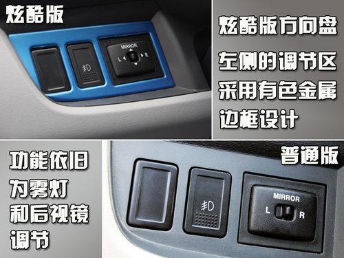 首先是方向盤(pán)左側(cè)的多功能控制區(qū),我們可以先看看普通版的設(shè)計(jì),黑色和灰色的搭配雖然是比較經(jīng)典的配色,但是對(duì)于奧拓這樣一款充滿個(gè)性的車(chē)來(lái)說(shuō),這樣的配色就顯得有點(diǎn)平淡了。炫酷版內(nèi)飾第一個(gè)亮點(diǎn)就是將外部的顏色帶到室內(nèi),讓車(chē)內(nèi)也有和外面遙相呼應(yīng)的地方,這里的黑藍(lán)配色不但看起來(lái)更清晰,裝飾效果也大大提升。