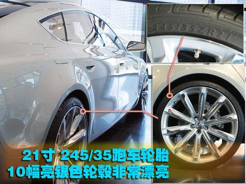 最為一款轎跑車它的四只車輪當(dāng)然要非常搶眼,這款概念車使用到了4只21寸的亮銀色鋁合金輪轂,筆直的線條盡顯跑車的硬朗與激情,輪胎匹配為245寬度的高扁平比跑車級(jí)輪胎,相信這對(duì)于跑車性能也會(huì)有很大的幫助。
