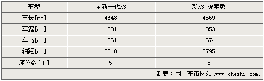 車身尺寸方面,換代寶馬X3長寬高分別為4648mm/1881mm/1661mm,軸距為2810mm,全方位提升了整車的內(nèi)部乘坐感受。相比老款X3,其長度延長了83mm,寬度拓寬了29mm,高度提升了40mm,軸距同時(shí)也得到了15mm左右增長數(shù)值。車內(nèi)空間的寬大可想而知。