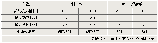 動力部分,老款X3搭載兩款自然吸氣發(fā)動機,排量分別為2.5L和3.0L。其3.0L發(fā)動機最大功率輸出達到190千瓦,最大扭矩達到300N.m。新一代X3共搭載兩款發(fā)動機,排量分別為3.0L和3.0T。3.0T發(fā)動機,新X3搭載心臟最大功率輸出達到221千瓦,最大扭矩達到408N.m。全新的動力技術帶來了更加爽快的動力感受。