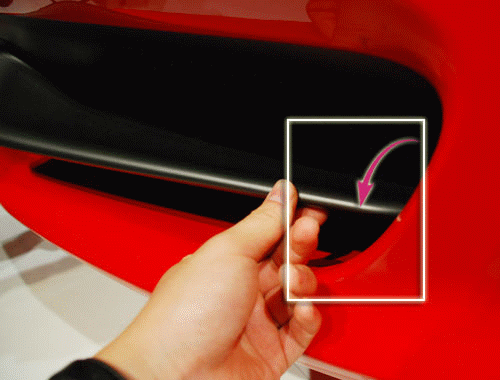 它的后方連接了引擎的冷卻系統(tǒng),當(dāng)車(chē)輛處于高速行駛發(fā)動(dòng)機(jī)需要更多冷空氣的進(jìn)入時(shí)車(chē)頭的這兩個(gè)部分會(huì)因氣流的下壓力而向下變形,此時(shí)擾流板上方就獲得了更大的進(jìn)風(fēng)量。同時(shí)可變型的前部擾流板也為車(chē)頭提供了合理的下壓力,讓前輪牢牢地抓住地面有不至于增加太多的阻力。