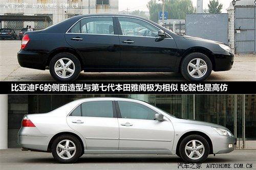 在外觀上,比亞迪F6最具代表性的模仿之處在于側(cè)面,因為它與第七代本田雅閣極度相似,而且連輪轂的造型也如出一轍,其實真的不用模仿得這么細致。F6的尾燈與奔馳S級的非常神似,不敢說完全模仿,但借鑒之處還是能看得出來的。