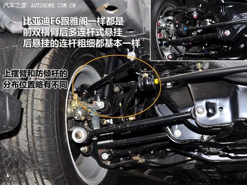 比亞迪F6的模仿并沒有僅僅停留在表面工作上,前雙橫臂后多連桿的懸掛形式也是從本田雅閣上借鑒過來的,后懸掛連桿的粗細程度都與原型車上的基本一樣,其實這也不是壞事,借鑒國外成熟的底盤設計也是加快進步的途徑之一。
