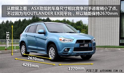 ASX勁炫是自2010年2月開始在日本銷售的豪華緊湊型SUV(RVR)的中國(guó)版車型。它繼承了帕杰羅的越野血統(tǒng),兼?zhèn)淞藲W藍(lán)德EX都市型SUV的性能。通過緊湊的車身設(shè)計(jì)、搭載的低油耗發(fā)動(dòng)機(jī)、以及鮮明運(yùn)動(dòng)風(fēng)格、加上18至24萬(wàn)元之間的售價(jià)區(qū)間,使ASX勁炫在國(guó)內(nèi)同級(jí)別市場(chǎng)中有不錯(cuò)的競(jìng)爭(zhēng)實(shí)力。