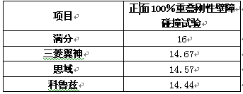 正面100%重疊剛性壁障碰撞試驗