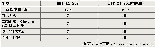 6月份寶馬在中國(guó)推出了4款世博版車型,其中包含3系、X1、X5和7系,近日記者在北京BMW授權(quán)經(jīng)銷商處發(fā)現(xiàn)X1 25i世博版已經(jīng)到店,下面我們就來共同了解一下X1 25i世博版車型與普通車型有什么不同。此外目前北京地區(qū)的X1車系比較緊張X1 18i和28i各家經(jīng)銷商都無法提供現(xiàn)車銷售,而世博版X1則可以滿足想要提現(xiàn)車的準(zhǔn)車主的迫切需求。