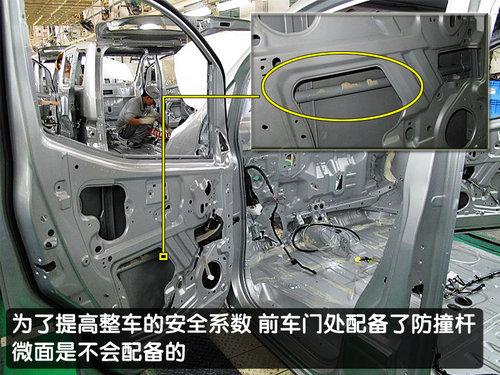 在車輛進(jìn)行組裝時,我們發(fā)現(xiàn)到在前車門內(nèi)部配有一根很粗壯的防撞桿,防撞桿加強(qiáng)了車身在發(fā)生碰撞時的車身強(qiáng)度,這個不拆下車門板是看不到的。