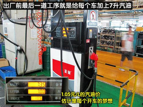 在車輛組裝完畢后,每輛車型將會添加7升汽油。從顯示屏可以看到,在這里每升汽油的價(jià)格僅為1.05元,這樣的價(jià)格相信一定是每位車主的夢想。