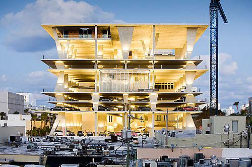 作為行人長廊的補(bǔ)充,這座“雕塑車庫”在一個(gè)混凝土-玻璃結(jié)構(gòu)中結(jié)合了300個(gè)車位的車庫,零售商店和一個(gè)頂層海景餐廳。車庫的每一層都利用了自然光線,而且能夠一覽邁阿密優(yōu)美的天際線。