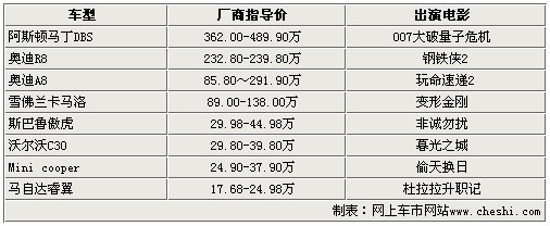 以上8款電影用車都是我們比較熟悉的,從溫馨的愛情片,到緊張的動(dòng)作片,甚至是虛無(wú)縹緲的科幻片,都有它們的參與。汽車已經(jīng)不僅僅是我們生活中的交通工具了,很多時(shí)候,我們可以通過(guò)電影來(lái)表現(xiàn)出它們的生命,并且已經(jīng)逐漸成為我們生活中的重要組成部分。