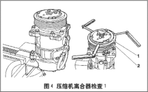 。4)空調(diào)壓縮機(jī)離合器。當(dāng)駕駛員選擇A/C模式時(shí),空調(diào)系統(tǒng)ECU使壓縮機(jī)離合器的線圈搭鐵,觸點(diǎn)閉合,電流通過(guò)離合器線圈,使離合器結(jié)合,帶盤(pán)帶動(dòng)壓縮機(jī)轉(zhuǎn)動(dòng)。