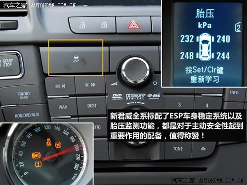 君威全系都備有胎壓監(jiān)測系統(tǒng),直接式胎壓監(jiān)測將傳感器植入輪胎內(nèi),實(shí)時(shí)監(jiān)控每條輪胎的胎壓狀況,駕駛員可以從行車電腦中直接調(diào)出壓力數(shù)值,做到心中有數(shù),雖然有時(shí)會(huì)有數(shù)值不準(zhǔn)的狀況發(fā)生。另外2010款君威全系都配備了安吉星系統(tǒng),購車者可免費(fèi)使用一年,體驗(yàn)定位、呼叫和緊急救援等服務(wù)。