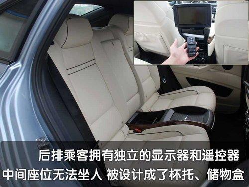 寶馬X6的后排空間被杯架與中央扶手分隔成左右兩個(gè)獨(dú)立的座椅,并與行李箱明確地分隔開來。其后排座椅后面的行李箱容積有570升,遠(yuǎn)大于一般的跑車。寶馬X6全能轎跑車的行李箱還配備了一種折疊硬蓋,平時(shí)很實(shí)用地收藏在地板下面,以方便載運(yùn)大體量物品。而當(dāng)4/6比例后座靠背放倒時(shí),后備箱容積將擴(kuò)至1450升。