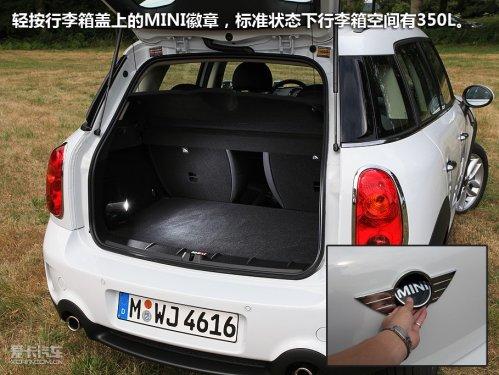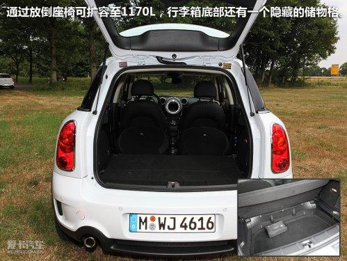 既然廠方說(shuō)Countryman是最實(shí)用的MINI,那么行李箱空間肯定會(huì)成為用戶仔細(xì)考量的一處。輕按行李箱蓋上的MINI徽章,標(biāo)準(zhǔn)狀態(tài)下行李箱空間有350L,通過(guò)放倒座椅可擴(kuò)容至1170L,在行李箱底部還有一個(gè)隱藏的儲(chǔ)物格。怎么樣,夠用了吧!