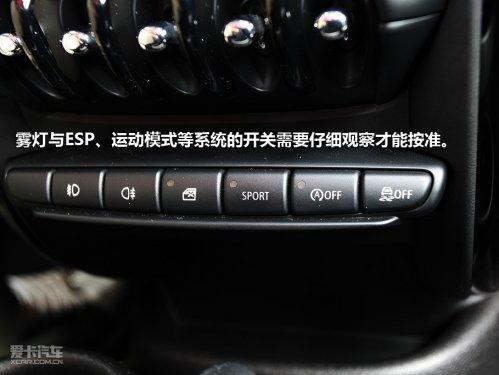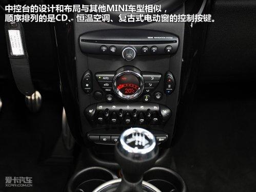 中控臺的設計和布局與其他MINI車型相似,從上而下順序排列的是CD、恒溫空調(diào)、復古式電動窗的控制按鍵,最下面一排的位置則有些別扭,霧燈與ESP、運動模式等系統(tǒng)的開關需要仔細觀察才能按準。