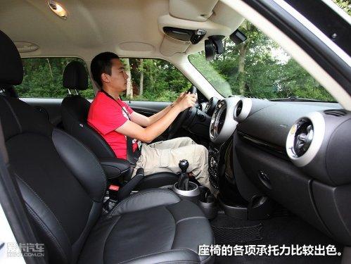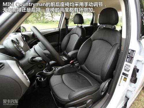 MINICountryman的前后座椅均采用手動(dòng)調(diào)節(jié),無(wú)論前排還是后排,座椅的高度都有所增加,雖然調(diào)節(jié)范圍夠大,但也沒(méi)有MINI Cooper那“貼地”的駕駛感受。這樣做的好處是顯而易見(jiàn)的,MINICountryman的車(chē)內(nèi)視野非常好,座椅的各項(xiàng)承托力也比較出色,所以駕駛員更多收獲的是輕松自在的感受。