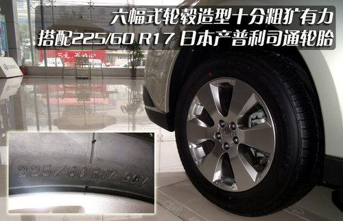 從粗獷的6幅輪轂上我們可以看出新傲虎更為注重的實用性一面,但在造型上不是很運動,搭配了原裝的普利司通輪胎,型號為225/60 R17。