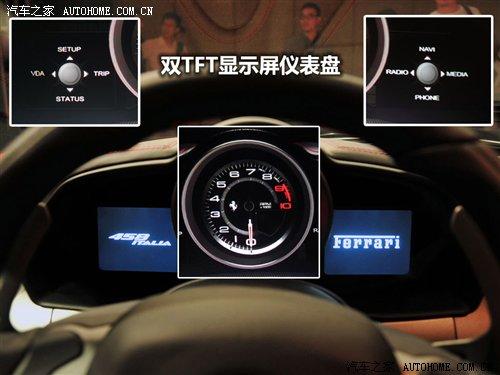 法拉利458 Italia的內(nèi)飾設(shè)計(jì)也是該車的一個(gè)亮點(diǎn),圍繞著駕駛員擺放的各種操作按鈕,就是想傳達(dá)出一個(gè)信息,這部車是為了駕馭而生,集控式方向盤將雨刷、轉(zhuǎn)向桿都合理的安置在方向盤上。458 Italia還使用了最新的雙TFT顯示屏儀表盤,在中央儀表盤的兩側(cè)設(shè)置了兩個(gè)TFT顯示屏可以顯示多種數(shù)據(jù)。