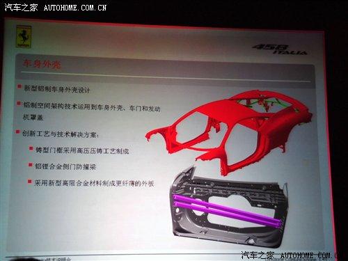 法拉利458 Italia采用了新型鋁制空間架構(gòu)模塊化底盤設(shè)計(jì),不僅大大降低了設(shè)計(jì)和制造的成本,而且在維修為更換部件方面更是有著很大優(yōu)勢(shì),各個(gè)部件可以單獨(dú)進(jìn)行更換配件,458 Italia在局部還使用了航空鋁制材料,鋁制結(jié)構(gòu)在重量和強(qiáng)度方面有相比于鋼制結(jié)構(gòu)車型要出色。