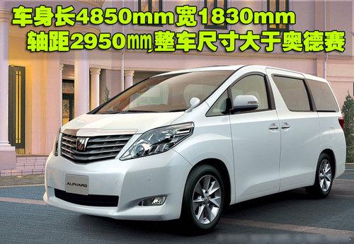 目前日本本土銷(xiāo)售的豐田Alphard是其第二代車(chē)型,分為兩驅(qū)和四驅(qū)兩個(gè)版本,兩驅(qū)車(chē)型的車(chē)身長(zhǎng)4850mm 。寬1830 mm ,高1890mm,四驅(qū)車(chē)型的車(chē)身長(zhǎng)為4850 mm ,車(chē)寬1830 mm ,高1905mm,而軸距均為2950mm。