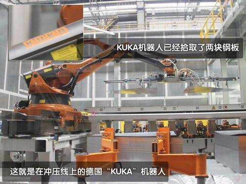 一汽大眾的鋼板原料會來自德國、韓國以及中國,為了防止細(xì)微的灰塵影響沖壓過程中的質(zhì)量,全部的鋼板原料都是密封的過程中運(yùn)送到這里的,在制造之前才會開封通過來自德國的KUKA機(jī)械手放進(jìn)沖壓機(jī)床進(jìn)行沖壓。機(jī)床屬于一機(jī)雙模,一起沖壓就會出來兩個配件。沖壓機(jī)床的力量達(dá)到了2000噸以上,配件在瞬間就會形成整體并保證原始的強(qiáng)度。