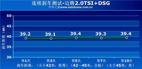 全力剎車時(shí)邁騰保持了良好的車身姿態(tài),百公里制動(dòng)距離39.14米,相信大家都能滿意這個(gè)結(jié)果,制動(dòng)系統(tǒng)反應(yīng)敏捷,通俗點(diǎn)講:隨踩雖有;腳下力度不斷增大,剎車的感覺也越發(fā)強(qiáng)烈,最終成績沒有讓我們失望。