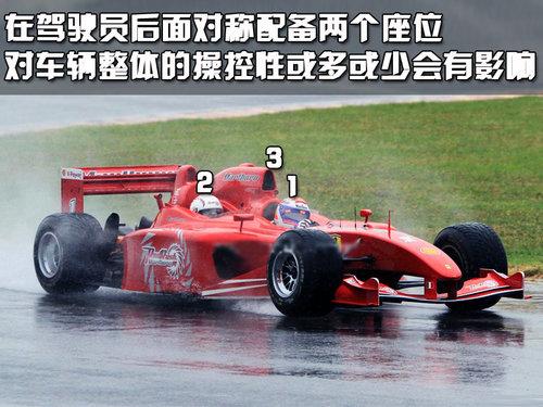 這款F1賽車采用了三座式設(shè)計,駕駛員的位置沒有變化,只是在駕駛員后面左右各安放了一個座位。坐在后面的乘客可以近距離感受F1賽車所帶來的極限駕駛樂趣,更可以清晰的看到F1賽車儀表盤上各項數(shù)據(jù)的狀況。