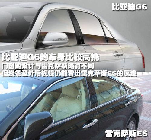 雖然以上圖片的角度有所不同,但我們可以從線條看的出來(lái),比亞迪G6的車身比較高挑,門窗的線條雖然非常相似,但軌跡有明顯不同。比亞迪G6也采用了可折疊外后視鏡,并且集成了轉(zhuǎn)向燈功能,從上圖中可以看出來(lái)是LED轉(zhuǎn)向燈,與雷克薩斯ES的風(fēng)格非常相近。