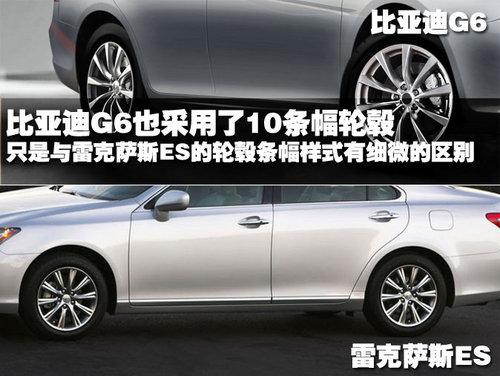 比亞迪G6采用的是10條幅鋁合金輪轂,目前還不確定輪胎的尺寸。但我們可以從輪轂樣式上看出來(lái),比亞迪G6模仿雷克薩斯ES的確非常仔細(xì),這兩款車只有輪轂條幅的樣式有很細(xì)微的區(qū)別。多條幅的輪轂樣式看上去帶有幾分運(yùn)動(dòng)感,似乎與比亞迪G6整車的豪華定位略有不符。