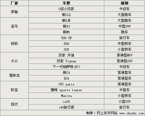 以奔馳、寶馬和標(biāo)致為主的歐系品牌在此次巴黎車展上將甙類多款車型的首發(fā),在上述表格中我們所列的車型都是從未在其他車展中亮相過的,屬于全球首發(fā)。其中奔馳的改款CLS、寶馬的新X3,在不久的將來肯定會(huì)成為奔馳中國和寶馬中國所引進(jìn)的全新進(jìn)口車型,在中國市場銷售。