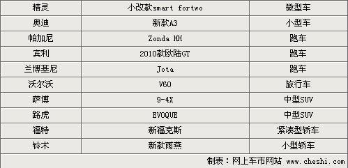 在上述表格中大部分廠家都是歐洲的豪華品牌或是相對小眾化的品牌,例如薩博和沃爾沃。這兩個(gè)品牌在中國市場的表現(xiàn)都不如其他歐系品牌,但是在歐洲市場中它們的銷售情況還是不錯(cuò)的。2010年的巴黎車展沃爾沃將會(huì)帶來S60的旅行版車型V60,旅行款車型是歐洲消費(fèi)者較為喜歡的款式能夠兼顧實(shí)用性和舒適性。另外,賓利、蘭博基尼、帕加尼也紛紛準(zhǔn)備帶來旗下的全新跑車,贏得全球富豪們的目光。