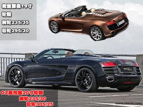 由Sport-Wheel出品的這款改裝版奧迪R8 Spyder在全車外形上并沒有做太大改動,主要著眼于動力的提升。不過為了配合超強(qiáng)的動力,他們選裝了傳奇品牌OZ制造的Ultraleggera HTL系列輪胎。這是一套20寸的運(yùn)動輪轂,采用前輪235/30-20后輪305/25-20的配比,在安全性上較官方版更勝一籌,價值40000元。